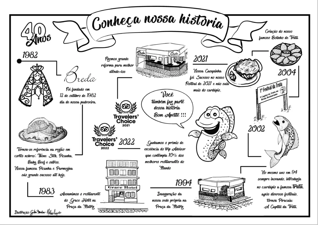Conheça os capítulos que construíram o Restaurante Breda. De nossas origens humildes até os dias de hoje, cada marco conta uma história de dedicação e paixão pela gastronomia. Viajamos na experiência da truta ao longo de 33 anos, sempre buscando a excelência e a qualidade. Venha explorar como nossa jornada é recheada de sabores e conquistas.